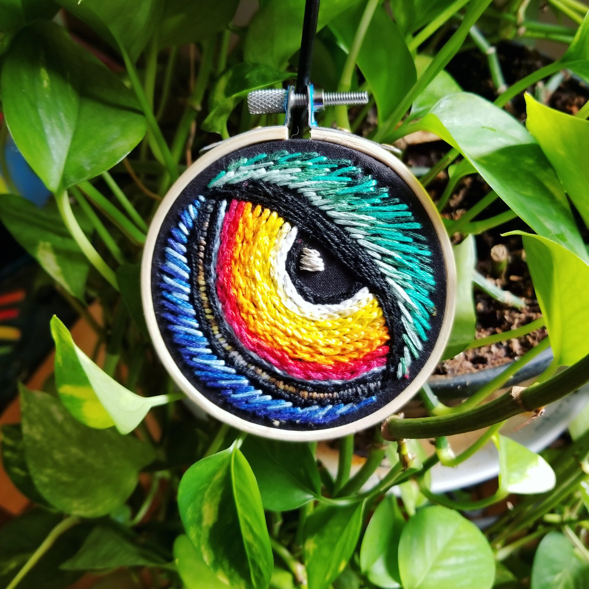Mini insectarium series, hand embroidered and stretched on mini hand painted bamboo hoop. Can be worn as jewellery or hung in a cute corner�With signed and dated on painted bamboo backing. See variations for pricing.