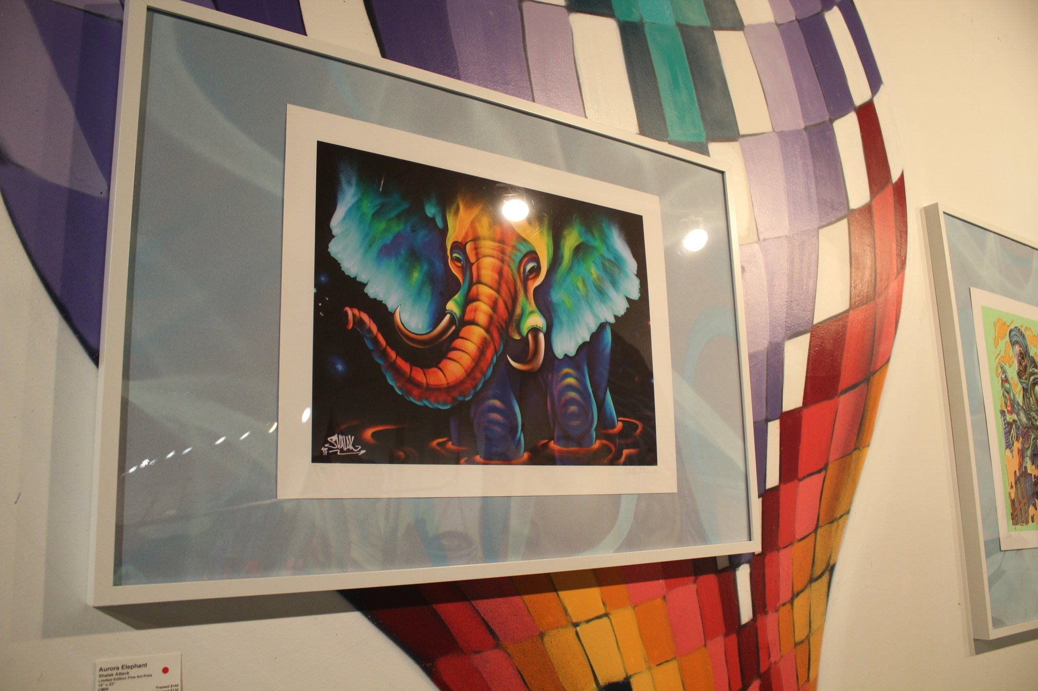 The Elephant Aurora Fine Art Print is a photograph of an original Spray Painted Street Art piece by Shalak Attack she did in Recife, Brazil in 2015 when she was invited to participate in the Graffiti Festival Recifusion. By using her spraypaint fat cap techniques and colourful palette, Shalak is able to transcend an ephemeral spirit-like quality where the elephant seems to dissipate into the atmosphere. In this piece she is honouring the Elephant and its struggle of survival against extinction, especially because of the ivory war against them.