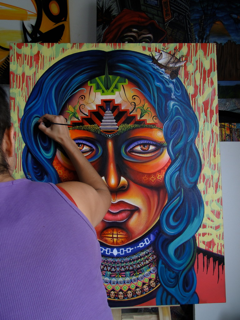 "Shalak Attack" is a Canadian-Chilean visual artist dedicated to painting, muralism, spray paint urban art, and canvas art. For over a decade, she has manifested her artistic expression on walls across the world. Shalak has participated in numerous artistic projects and exhibitions in Canada, Chile, Brazil, UK, Holland, Germany, Sweden, Senegal, Palestine, Jordan, Israel, Belgium, Spain, Argentina, Venezuela, Mexico, USA, Paraguay, and the Dominican Republic. She is a co-founder and co-director of the international art collectives “Clandestinos”, the “Bruxas”, and the “Essencia Art Collective”.