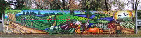 In the summer of 2013, The Essencia Arts Collective (Shalak, Fiya and Smoky) worked on a community mural with the Black Creek Community Farm on Jane St, north of Finch Ave in Toronto. Local artists, youth and farm supporters were part of the process from conceiving themes and representations all the way to painting the mural. It was a successful project to bring visual awareness of the farms location and representation of their work within the City.