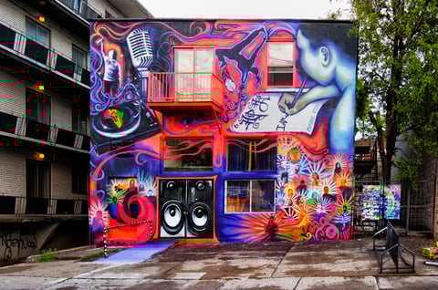 In 2015, The Essencia Arts Collective (Shalak, Fiya, Smoky) painted Canada's longest mural dedicated to the global discussion on Climate Change and the importance of environmental preservation and education. As a chapter two of the The Essencia's 2015 Water Mural, a series of community workshops and personal research impacted the visual story line of the mural. The mural "Awakening" became part of a controversial decision by a city councillor to erase part of the mural as he deemed it "too scary". With a massive media and community outrage of the possible censorship, the final decision was to preserve the murals integrity and image in its original form. The huge outpour of support by local and international communities protected the mural and its crucial message for one of present days most pressing global issues: Climate Change and our addiction to fossil fuel energy.
